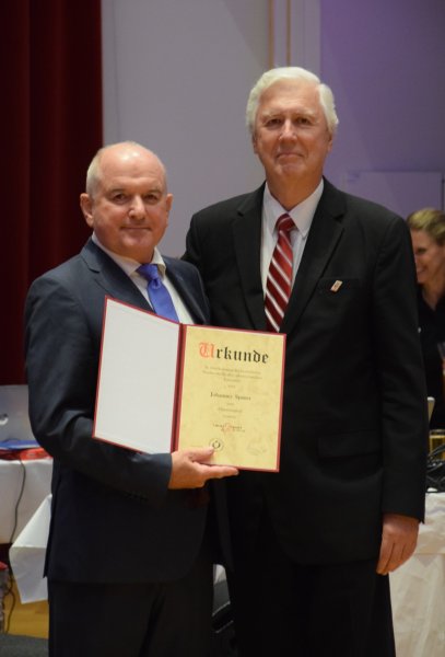 Der ÖTSV Präsident Hermann Götz überreichte Doris Furtenbacher und Hans Sporer eine Urkunde, die sie als Ehrenmitglied des österreichischen Verbandes auszeichnet.
