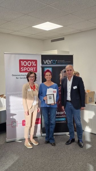 Überreicht wurde die Urkunde und das Abzeichen von Rosa Diketmüller, Präsidentin 100%Sport und Dieter Brosz.