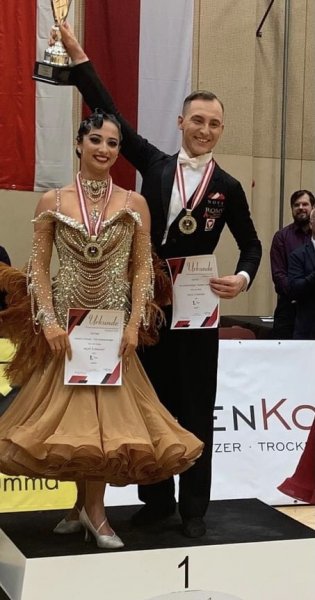 Die Sonderklasse wurde von allen mit großer Spannung erwartet. Spannend deshalb, weil in diesem Jahr sich 3 - 4 Paare durch ihre Leistungen herauskristalliert haben, ein würdiger Staatsmeister sein zu können. Als bei der Siegerehrung nur mehr 2 Paare auf der Fläche standen, war die Spannung nicht mehr zu überbieten. Man konnte eine Stecknadel fallen hören. Als der Turnierleiter, der Präsident des ÖTSV Hermann Götz, das Ergebnis bekanntgab, war der Jubel bei den neuen Staatsmeistern Natalie Cremar und Tim Grabenwöger unermessslich. Wir gratulieren euch sehr herzlich und wünschen weiterhin viel Erfolg!
